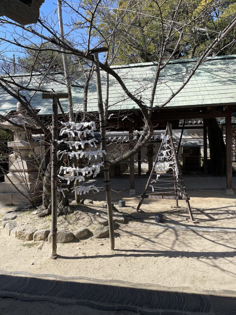 境内の桜が満開になり、淡いピンク色の花が神社を美しく彩ります。